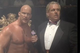 The real arrival of Stone Cold Steve Austin. Austin 3:16 says I just whooped your ass!